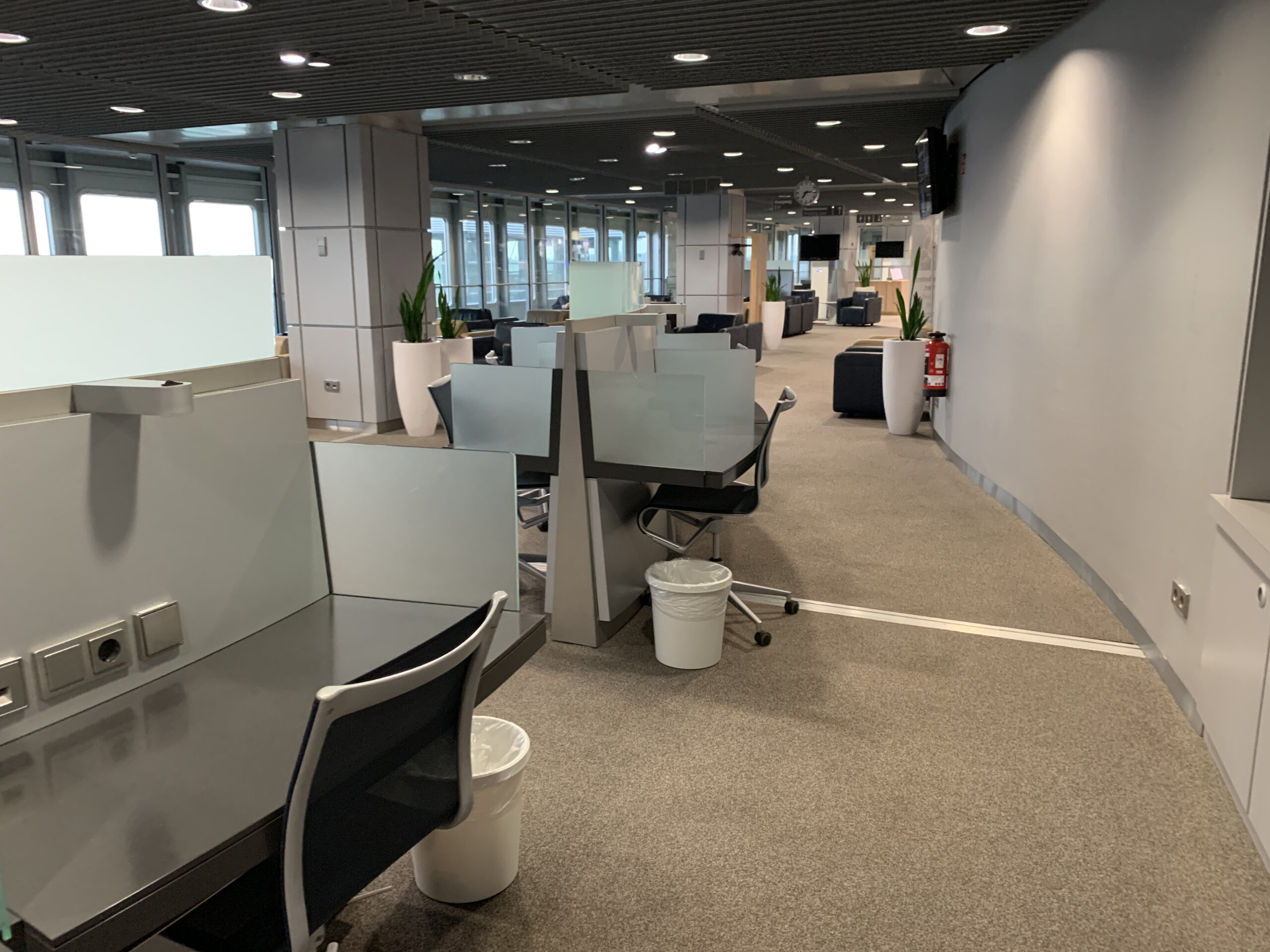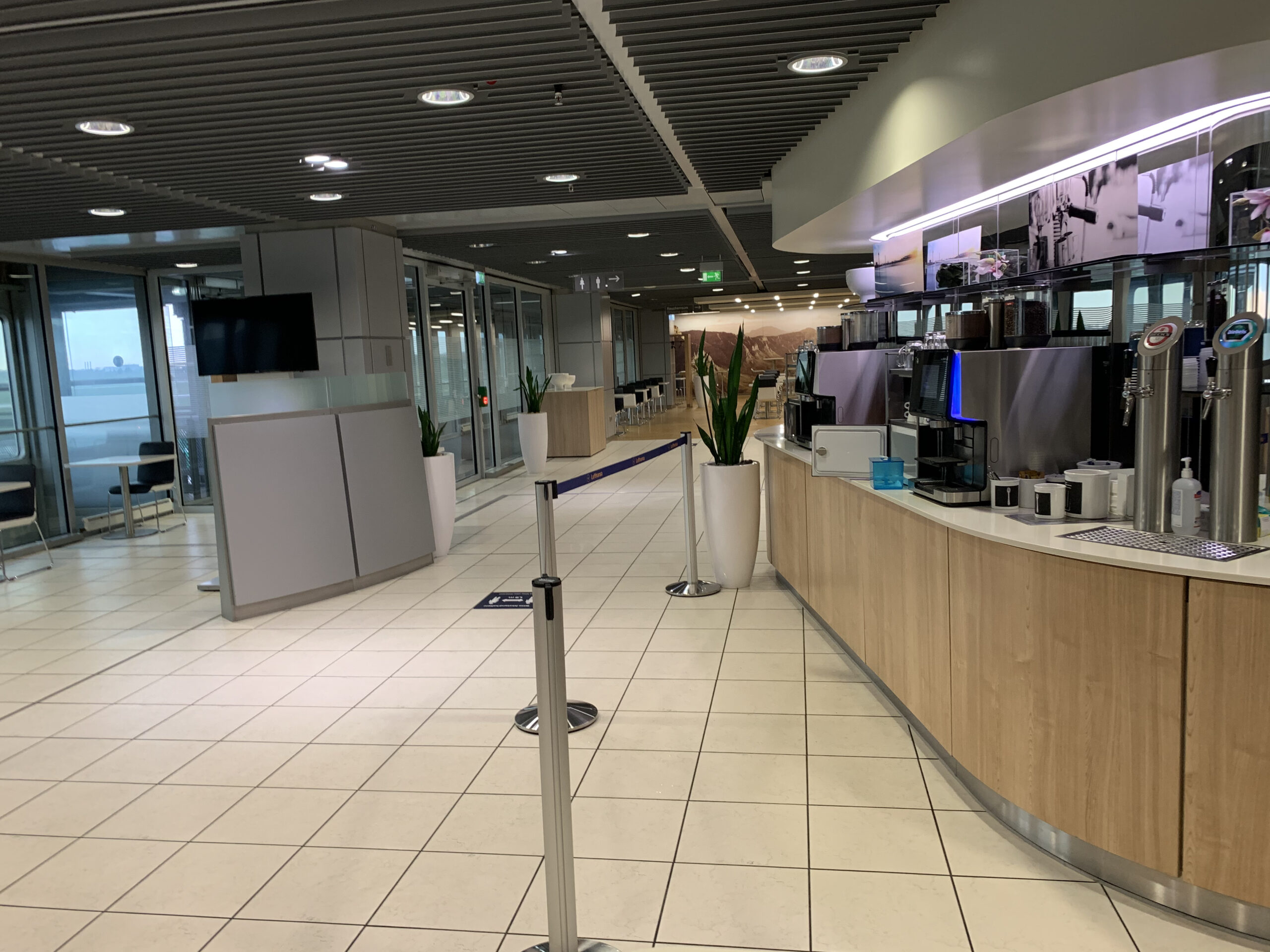 Kleine Lounge, guter Vorfeld-Blick — Corona-Einschränkungen merkt man deutlich, Alkohol nur auf Anfrage.