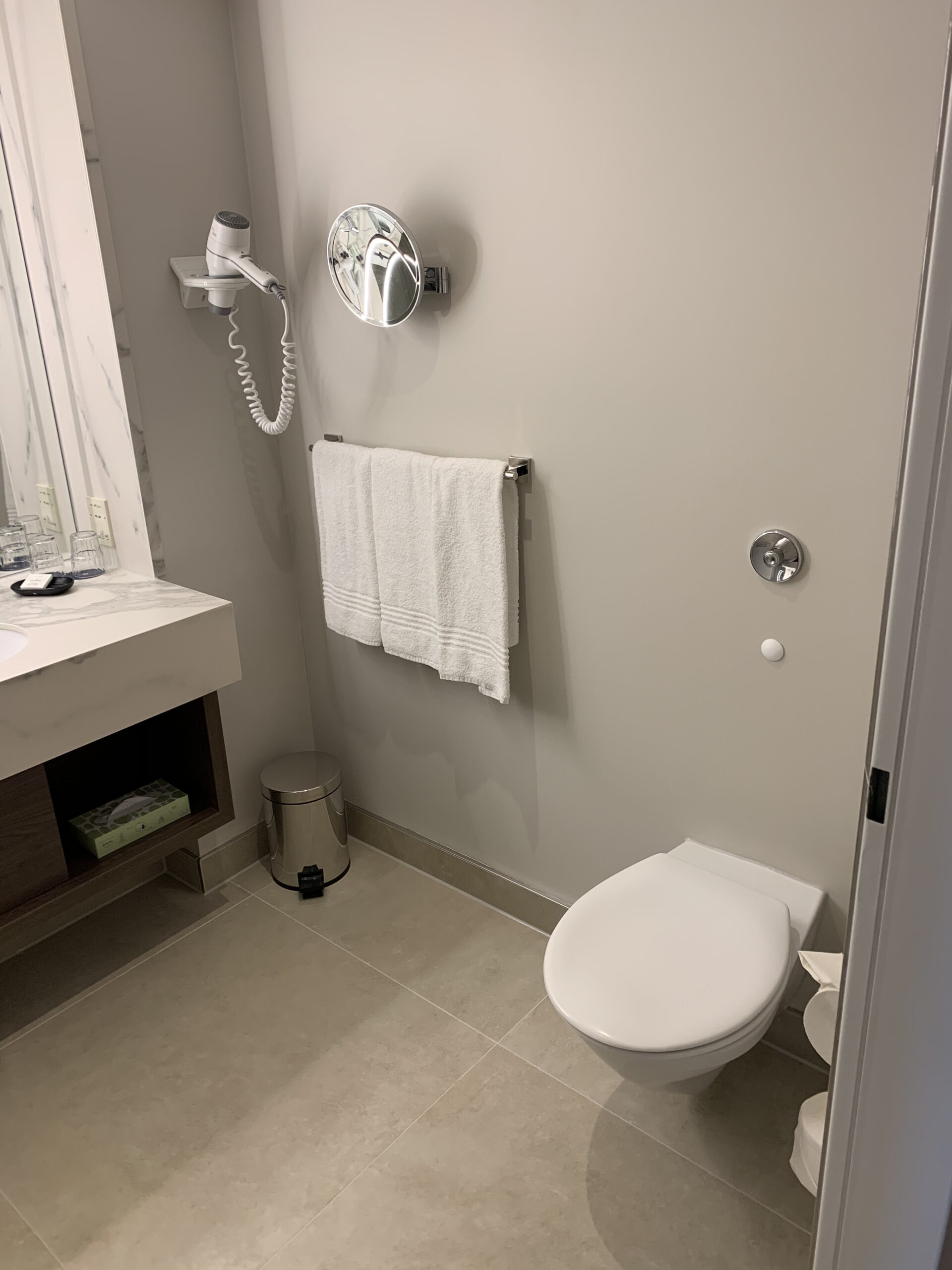 Das Badezimmer ist nicht riesig, aber sehr hell und vor allem sauber. Pflegeprodukte hat es auch genügend, und wenn man mehr benötigt kann man die auch entweder telefonisch oder per App bestellen.