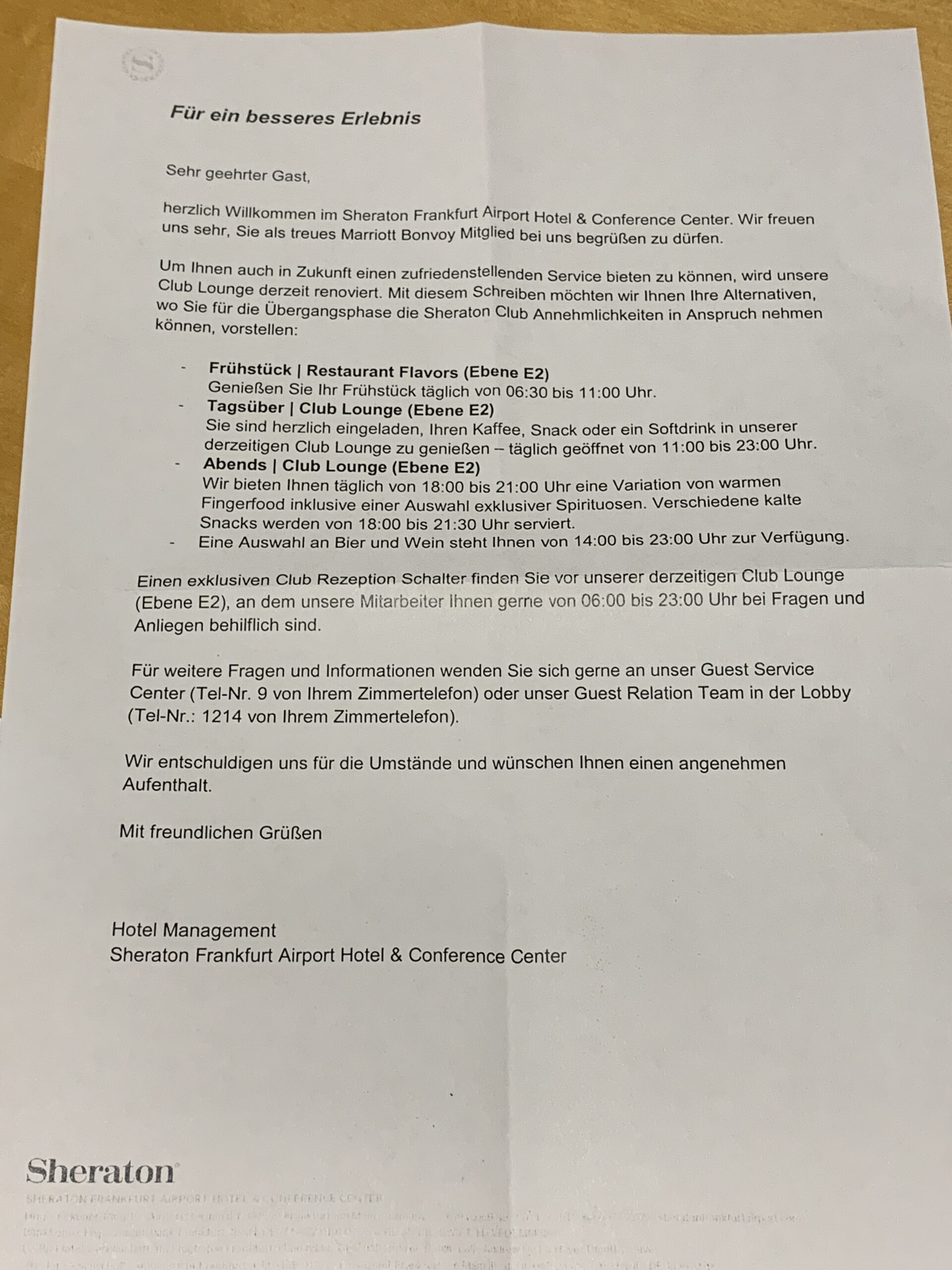 Zugegeben das Bild habe ich morgens gemacht beim frühen Check Out. Aber es war auch sonst nicht so viel los und man war eindeutig bemüht dem Gast alle Informationen zu geben. Hier kommt dann noch das Bild mit den Informationen.