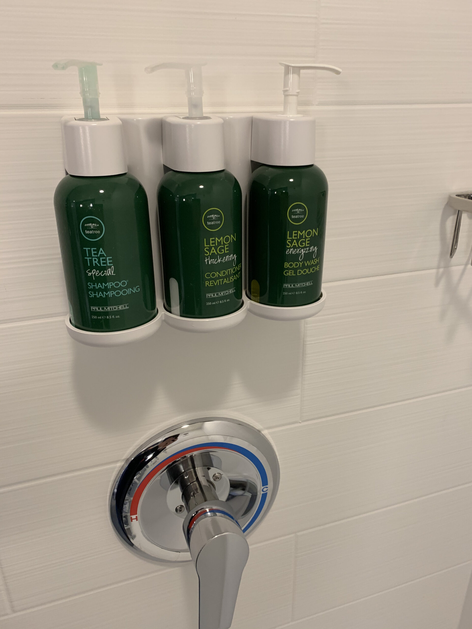 Das Bad war schlicht, aber gepflegt. Anstelle von kleinen Fläschchen gab es Wandspender für Shampoo, Duschgel und Co. – nicht mein Favorit, aber heutzutage vielerorts Standard. Wichtig war: Alles war sauber, und es gab genügend Handtücher und Licht.
