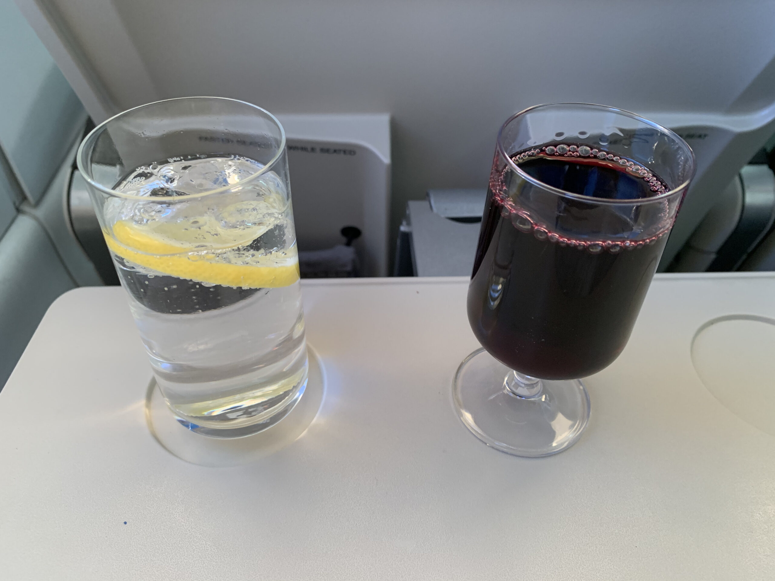 Auf einen Gin Tonic musste ich hier verzichten da es lediglich Weiss und Rotwein sowie Champagner gab. Dies sei coronabedingt der Fall hat man mir erklärt. Komisch auf dem Hinflug gab es alles. Auch wurde das Glas nur halb aufgefüllt, dies fand ich dann schon etwas seltsam. Besonders da sich die FA dann auch kaum blicken liess. Die obligatorische Schokolade gab es auf dem Hin wie auch dem Rückflug.