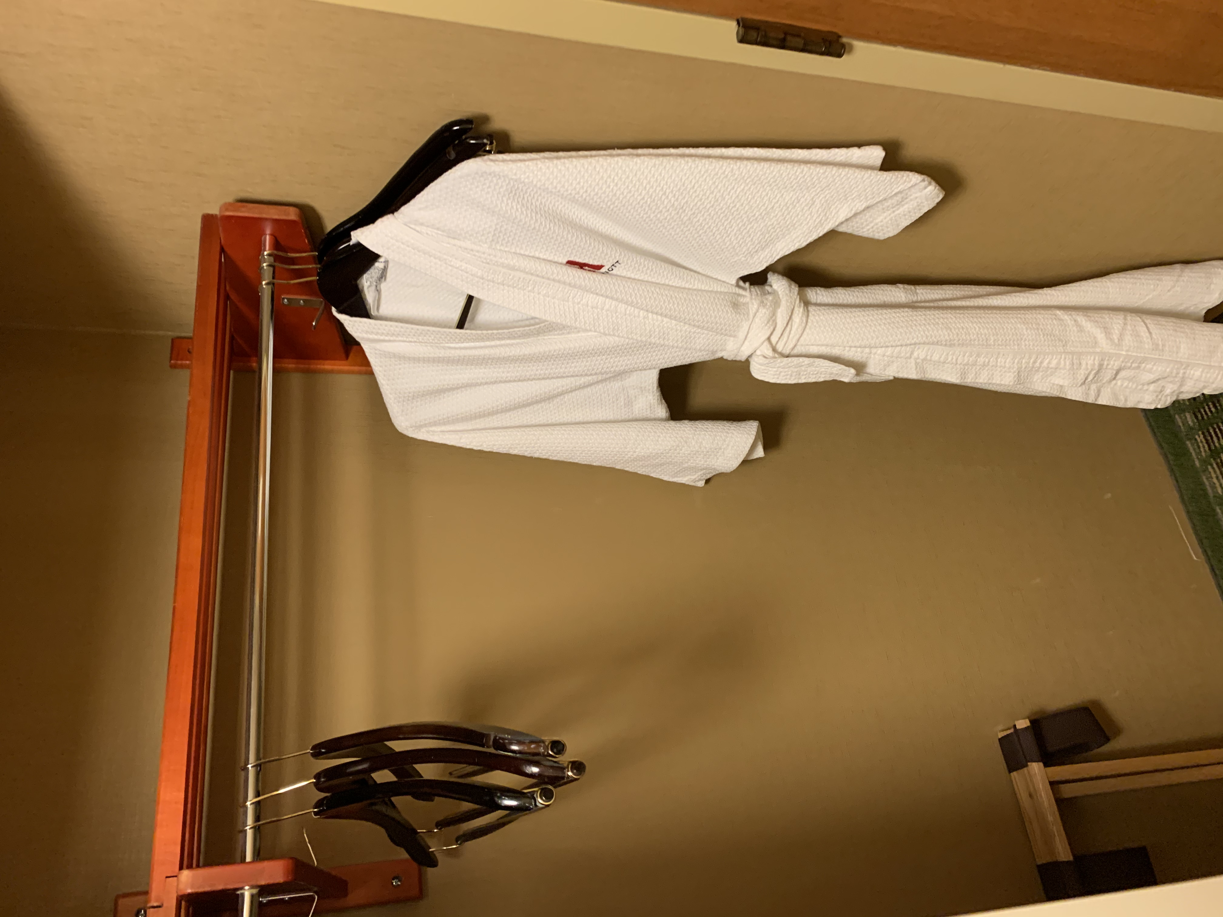 Rechts: ein Schrank mit Bademantel und Safe
