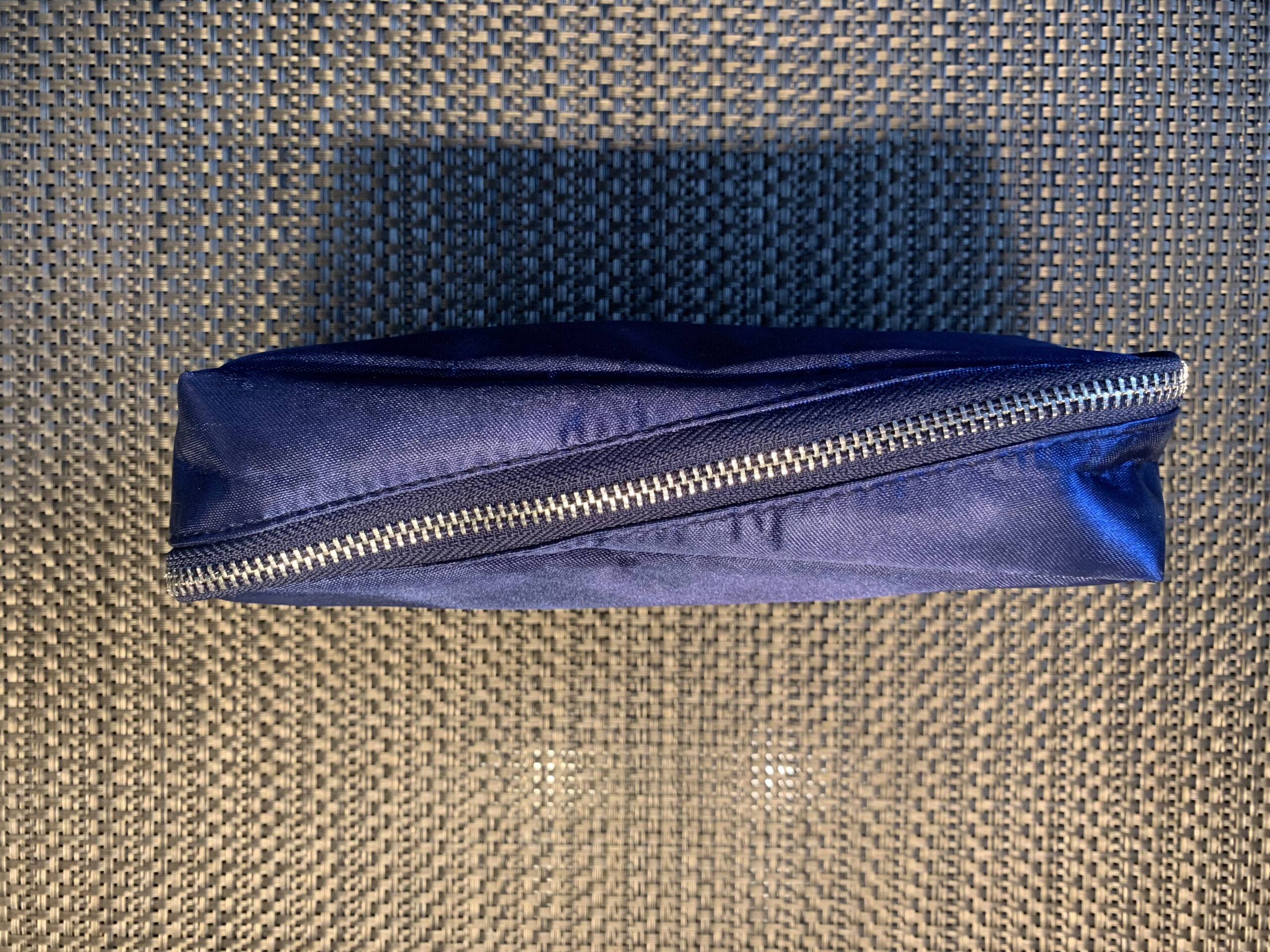 Dieses Amenity Kit von Thai Airways gibt es in der Business Class (oder wie Thai Airways es nennt Royal Silk) und kommt in einer schönen blauen Tasche daher. Diese ist von Greyhound Original und macht eigentlich einen schönen (wenn auch nicht unbedingt sehr hochwertigen) Eindruck. Übrigens ist der Reissverschluss absichtlich schräg angebracht.