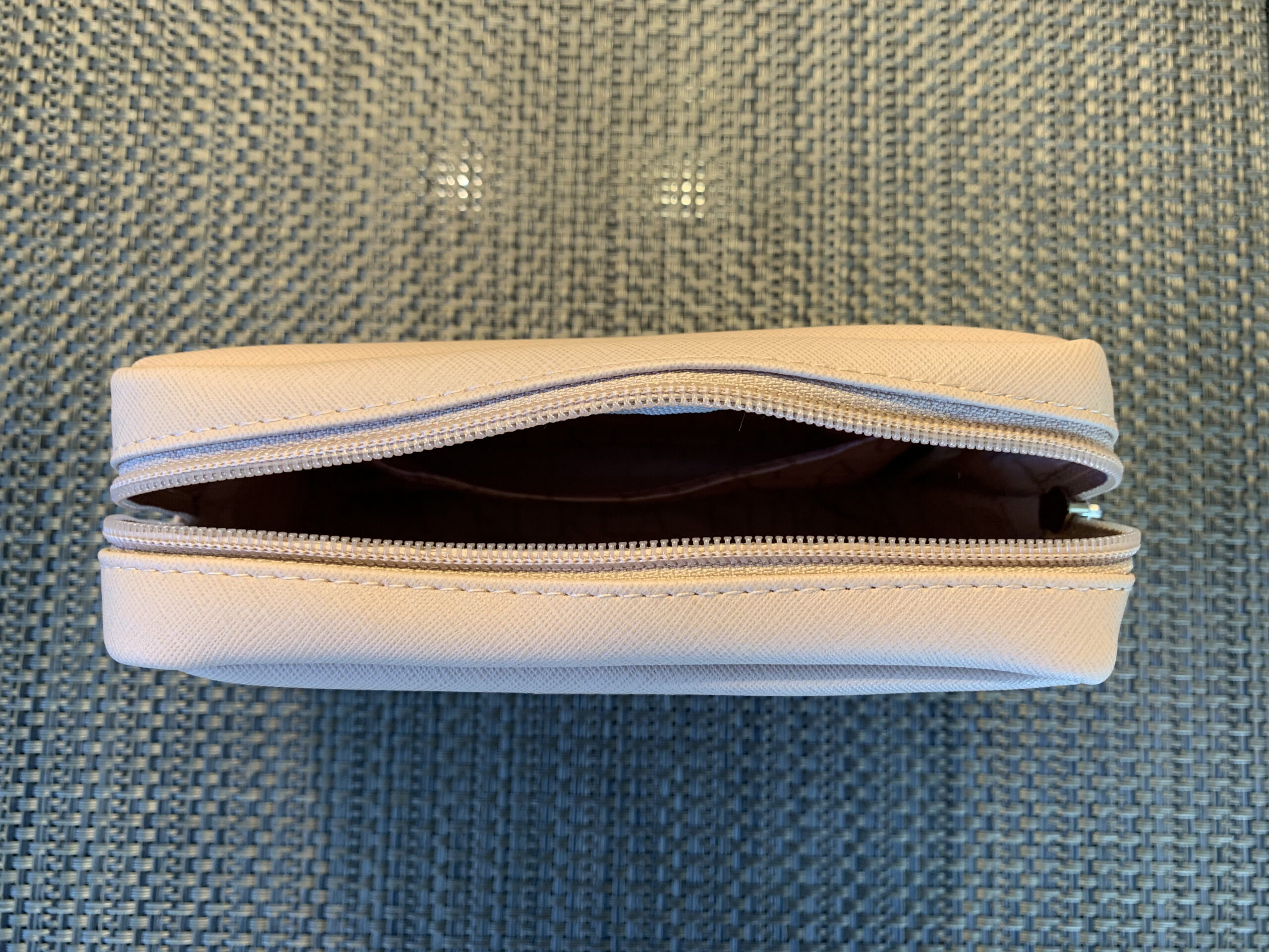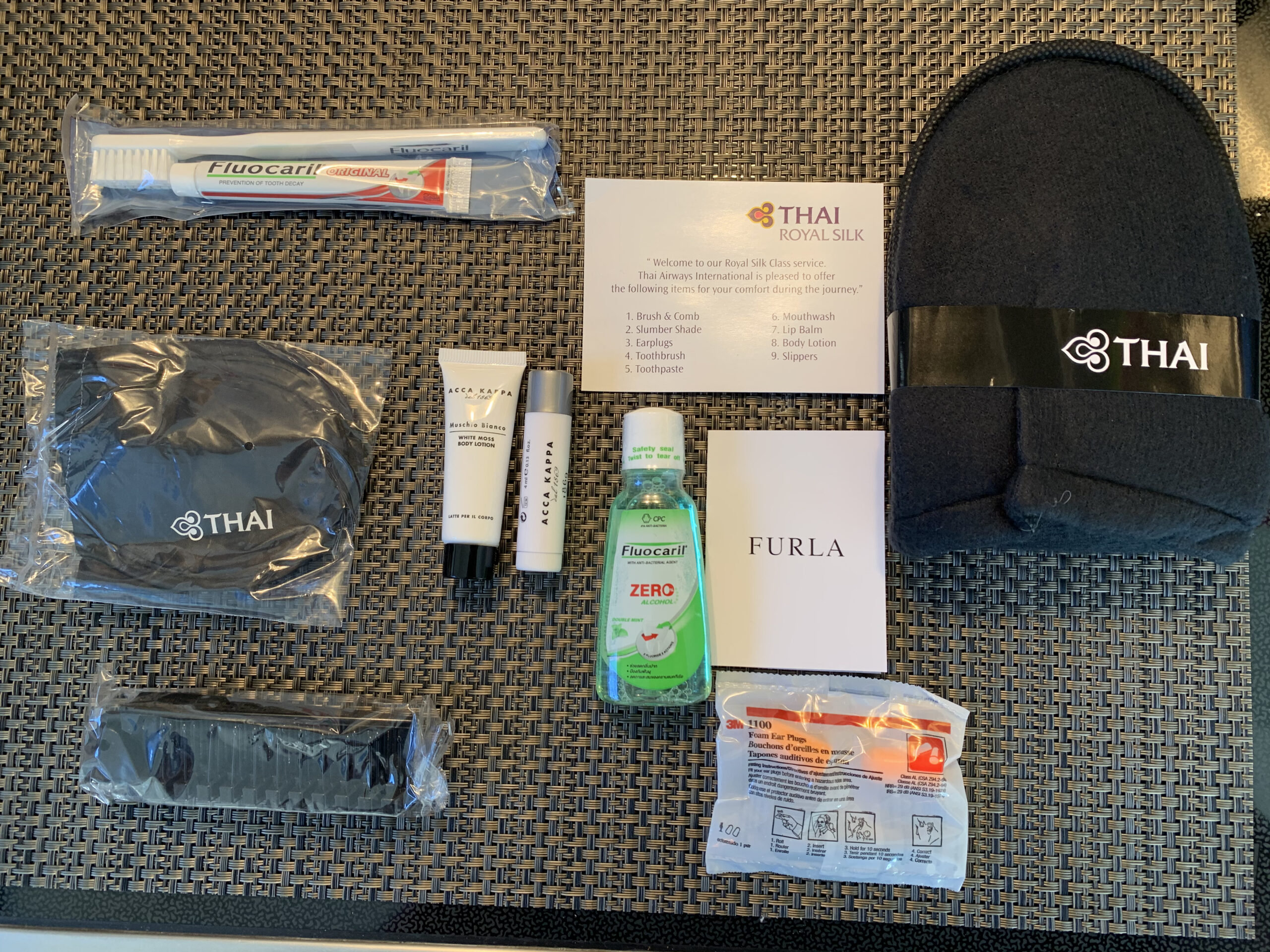 In der Thai Royal Silk (so nennt man die Business Class bei Thai Airways) bekommenden die Reisenden ein Amenity Kit (ausser bei Kurzstrecken). Darum geht es auch in diesem Review. Übrigens kommt das ganze aus dem Hause Furla”. Dieses Amenity Kit war in einem sehr schlichten Beige gehalten. Die Qualität war ganz okay, vor allem wenn man es zum Beispiel mit dem der Lufthansa vergleicht.