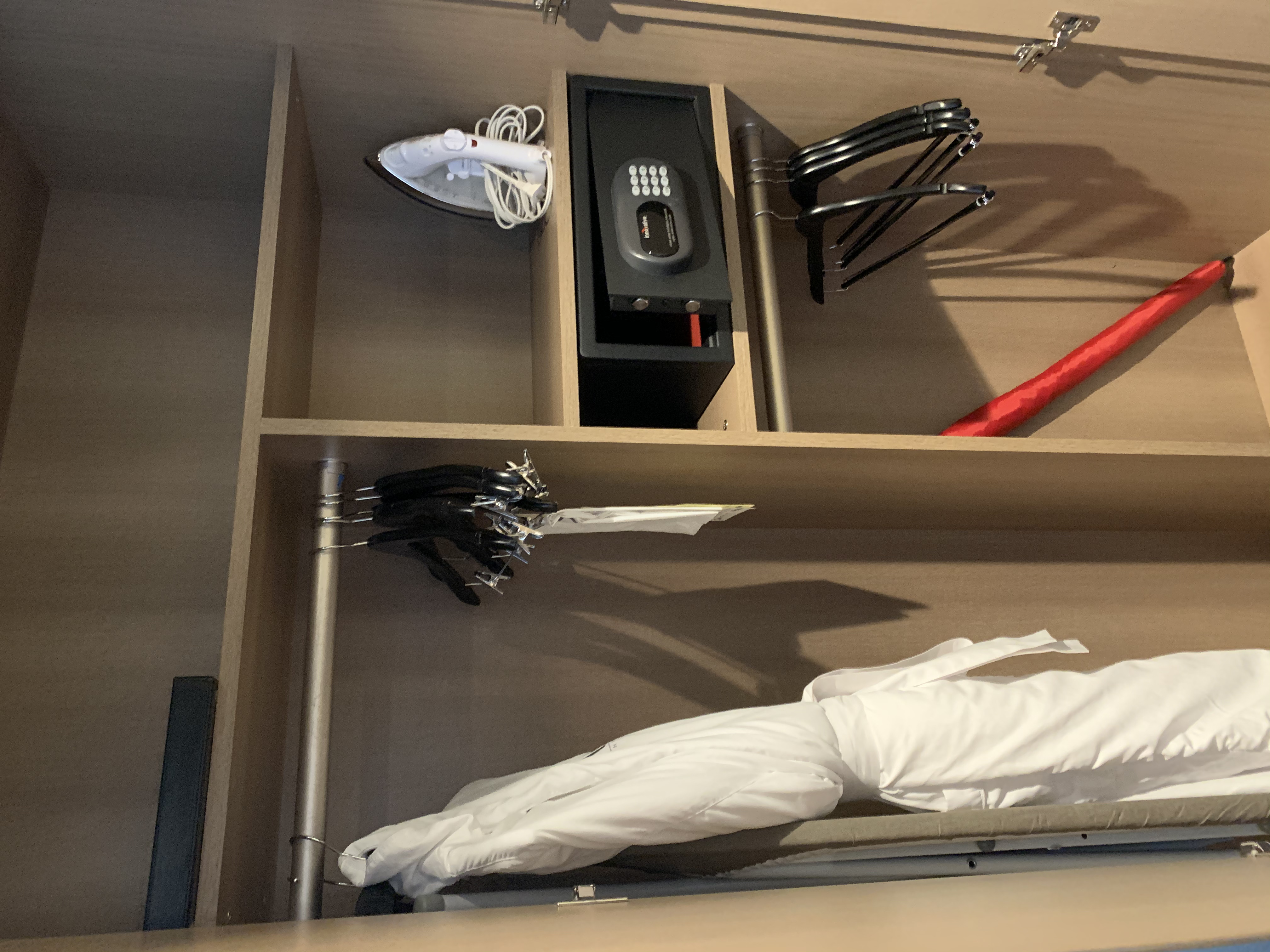 Ein echtes Highlight war für mich der Bereich beim Eingang: Dort befanden sich ein geräumiger Kleiderschrank, ein Safe, eine hochwertige Amici-Kaffeemaschine – und: eine kostenfreie Minibar, die täglich aufgefüllt wurde.