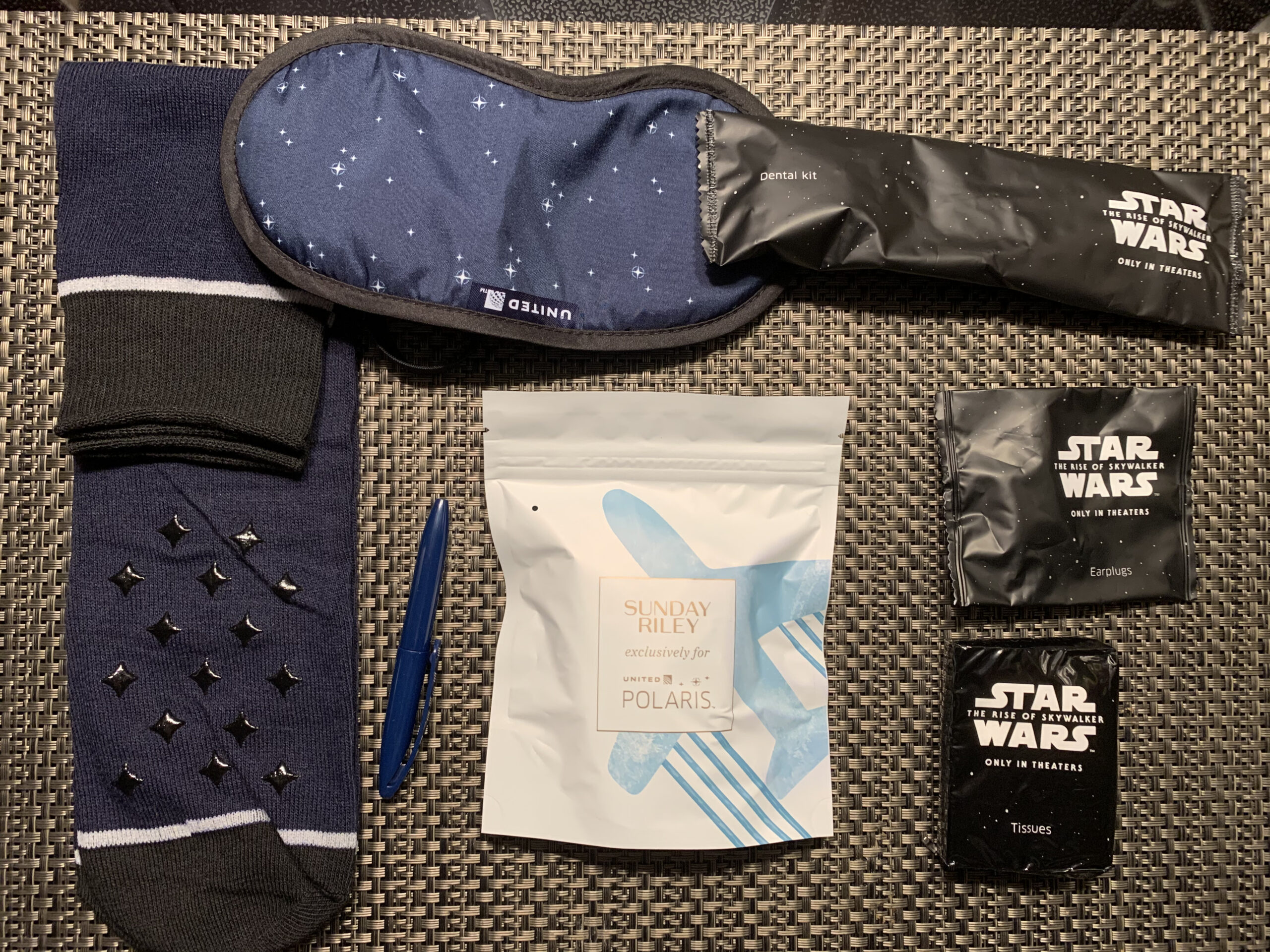 Zum Start des letzten Star Wars Films hat United ein extra Amenity Kit für recht kurze Zeit herausgebracht. Eine meiner Meinung nach sehr willkommene Abwechslung. Es kommt in einer simplen Tasche daher, die mit Star Wars und United gebrandet ist. Aber schaut selbst: